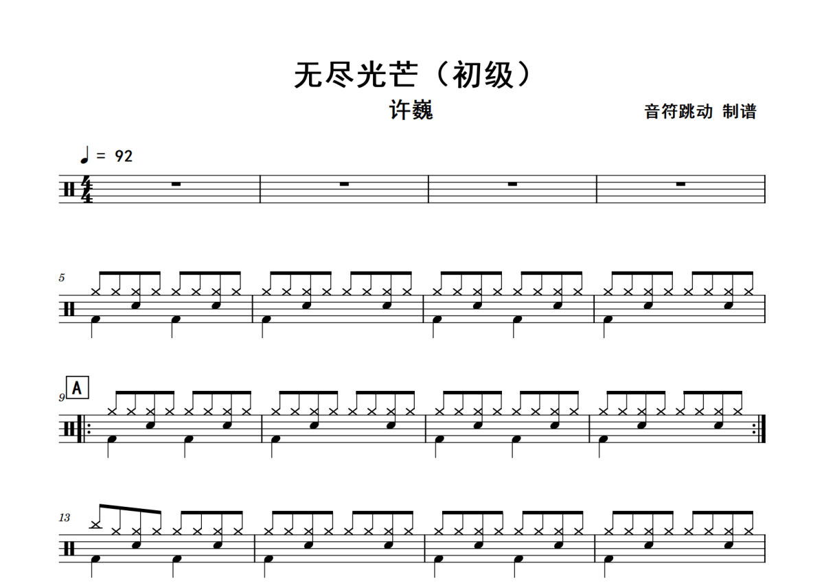 许巍《无尽光芒》鼓谱 - 架子鼓谱 - 初级