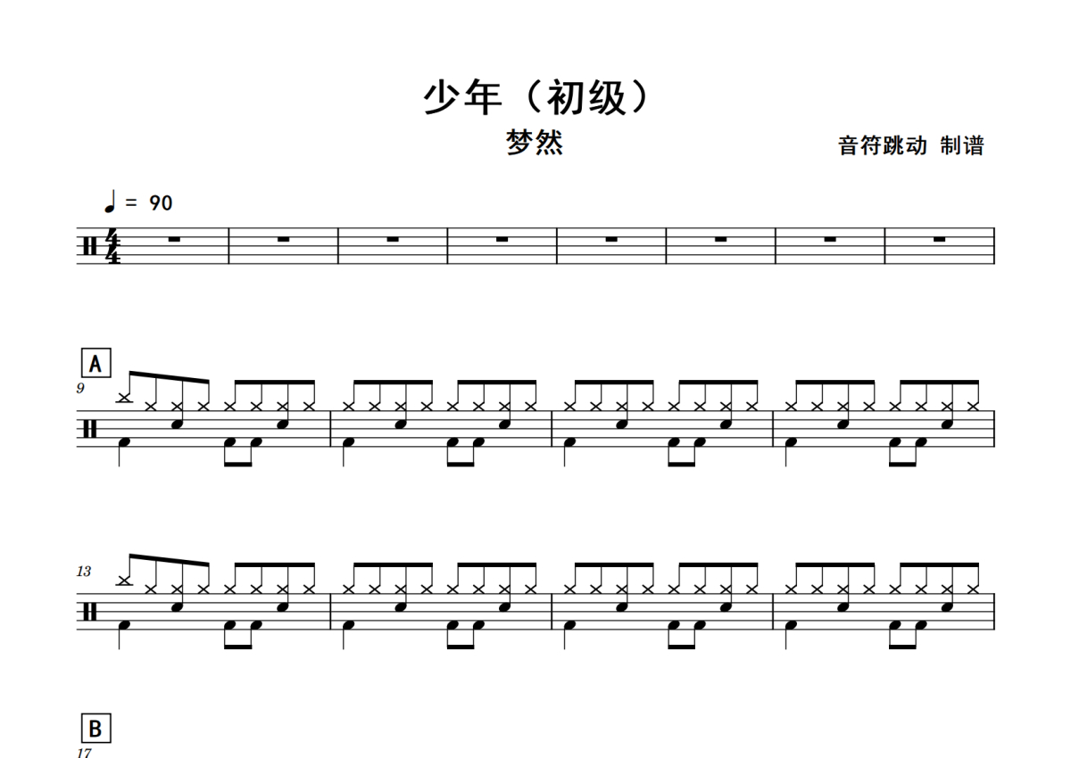 梦然《少年》鼓谱 - 架子鼓谱 - 初级