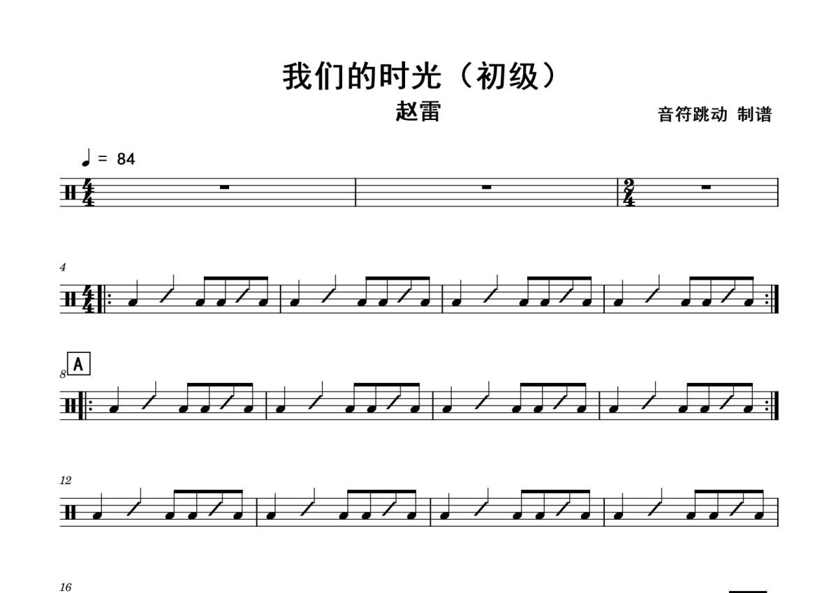 赵雷《我们的时光》鼓谱 - 架子鼓谱 - 初级