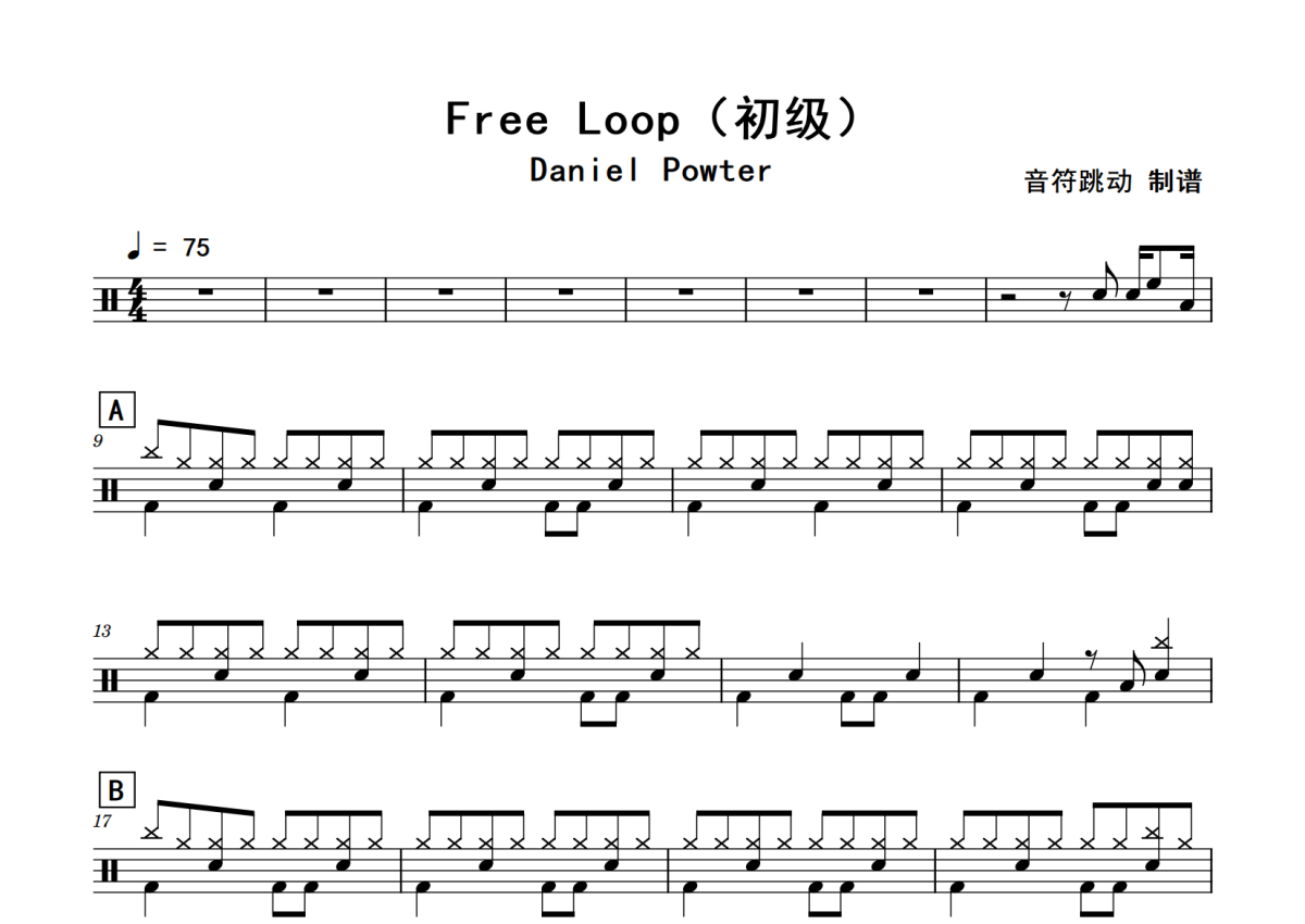 Daniel Powter《Free Loop》鼓谱 - 架子鼓谱 - 初级