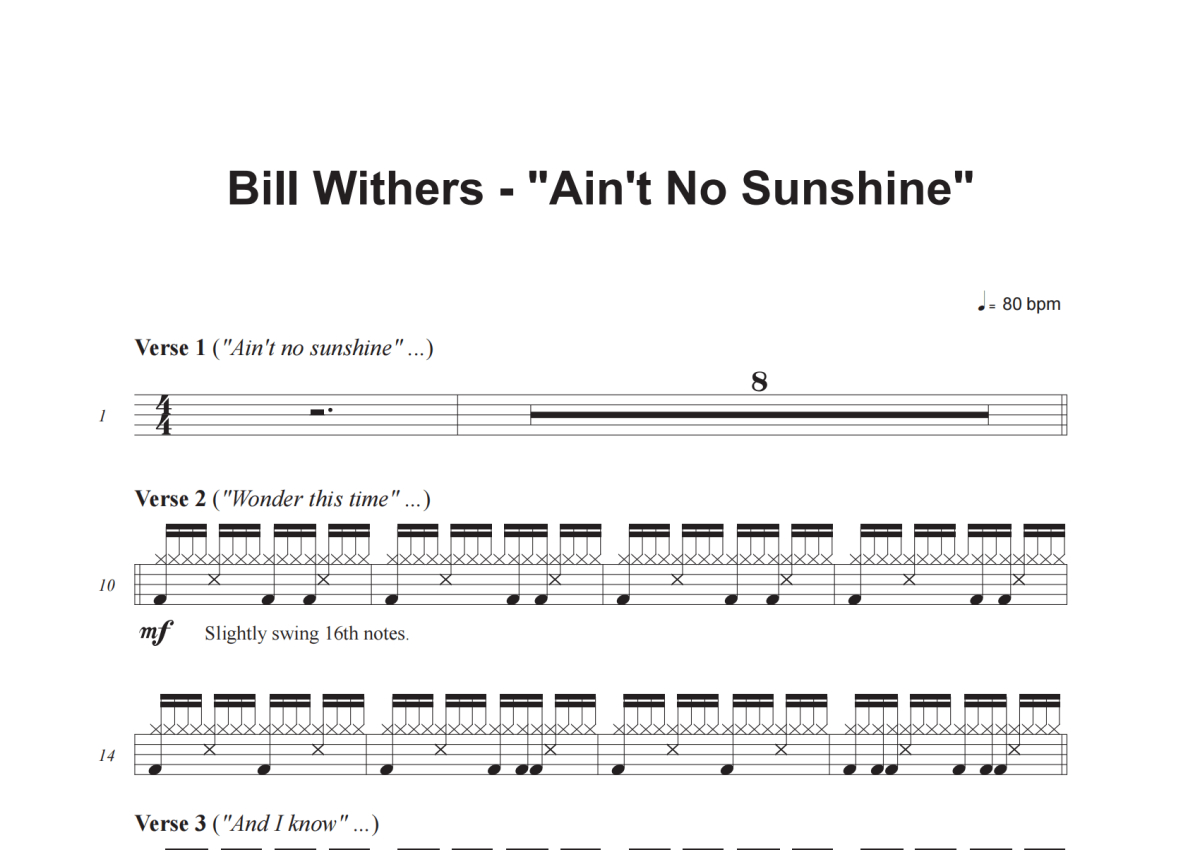 Bill Withers《Ain't No Sunshine》鼓谱 - 架子鼓谱