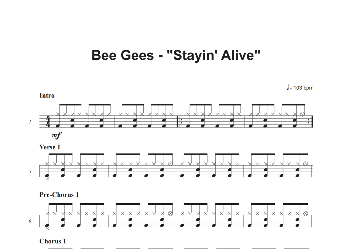 Bee Gees《Stayin_ Alive》鼓谱 - 架子鼓谱