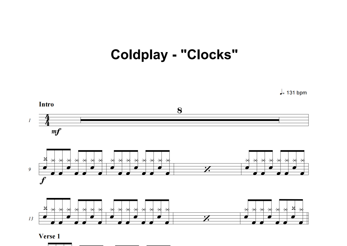 Coldplay《Clocks》鼓谱 - 架子鼓谱