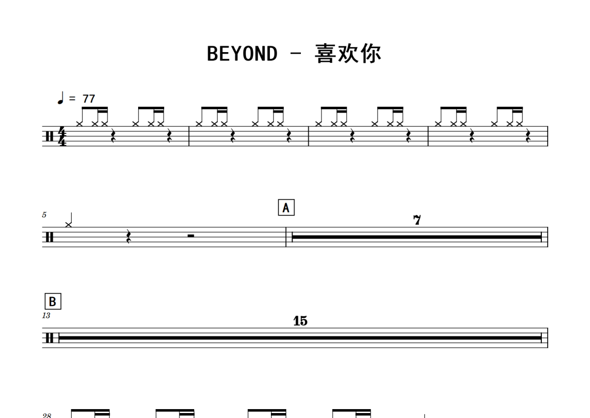 BEYOND《喜欢你》鼓谱 - 架子鼓谱