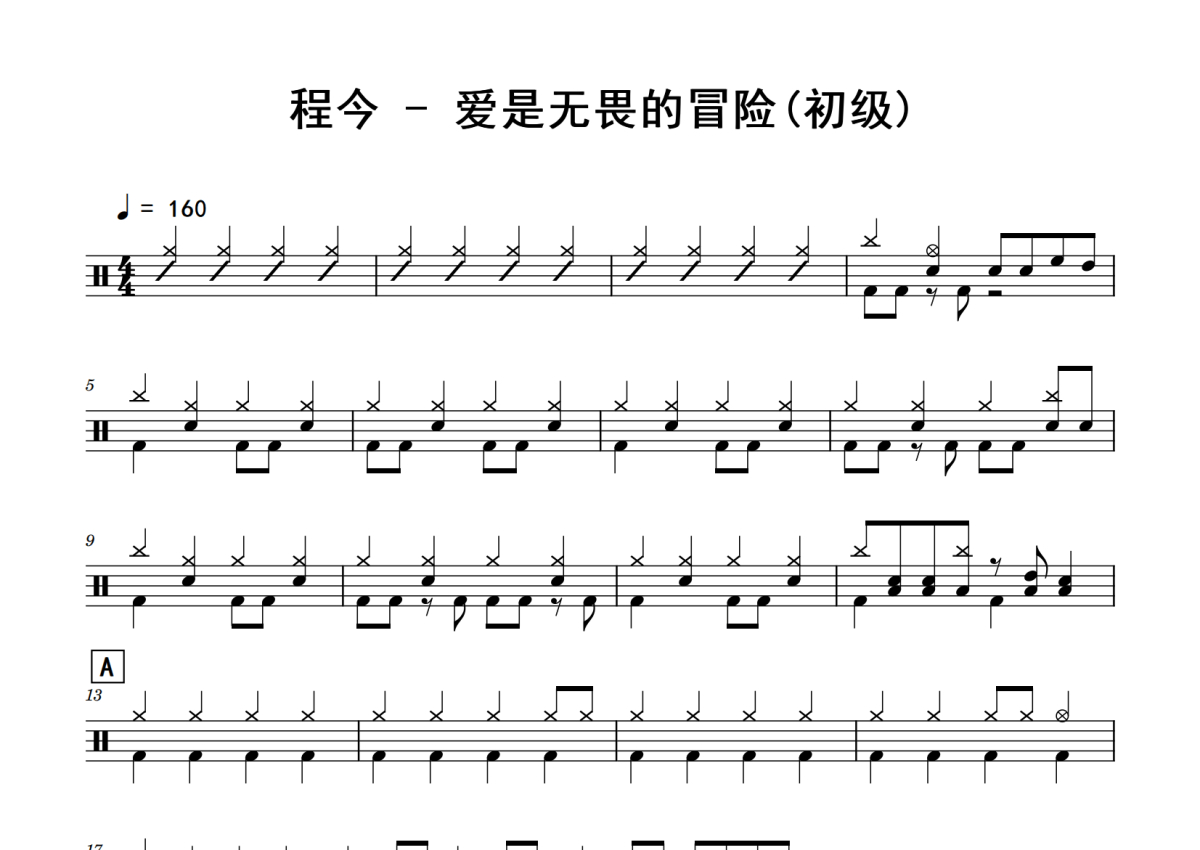 程今《爱是无畏的冒险》鼓谱 - 架子鼓谱 - (初级)
