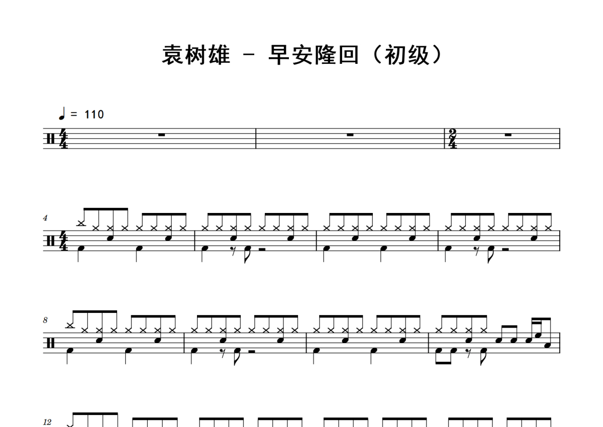 袁树雄《早安隆回》鼓谱 - 架子鼓谱 - (初级)