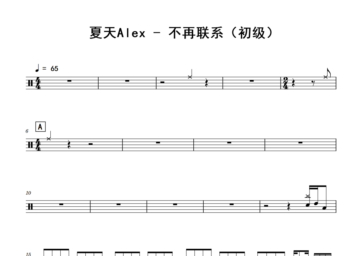 夏天Alex《不再联系》鼓谱 - 架子鼓谱 - (初级)