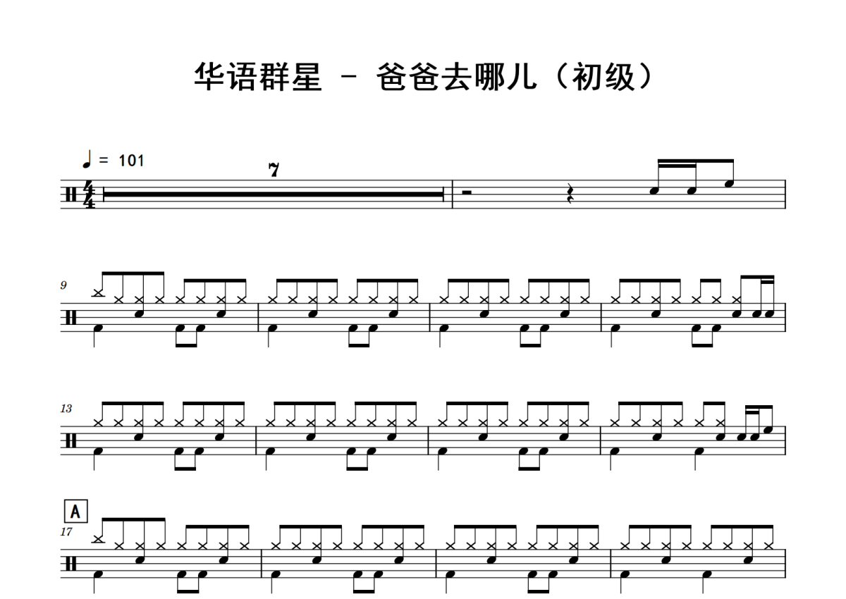 华语群星《爸爸去哪儿》鼓谱 - 架子鼓谱 - (初级)