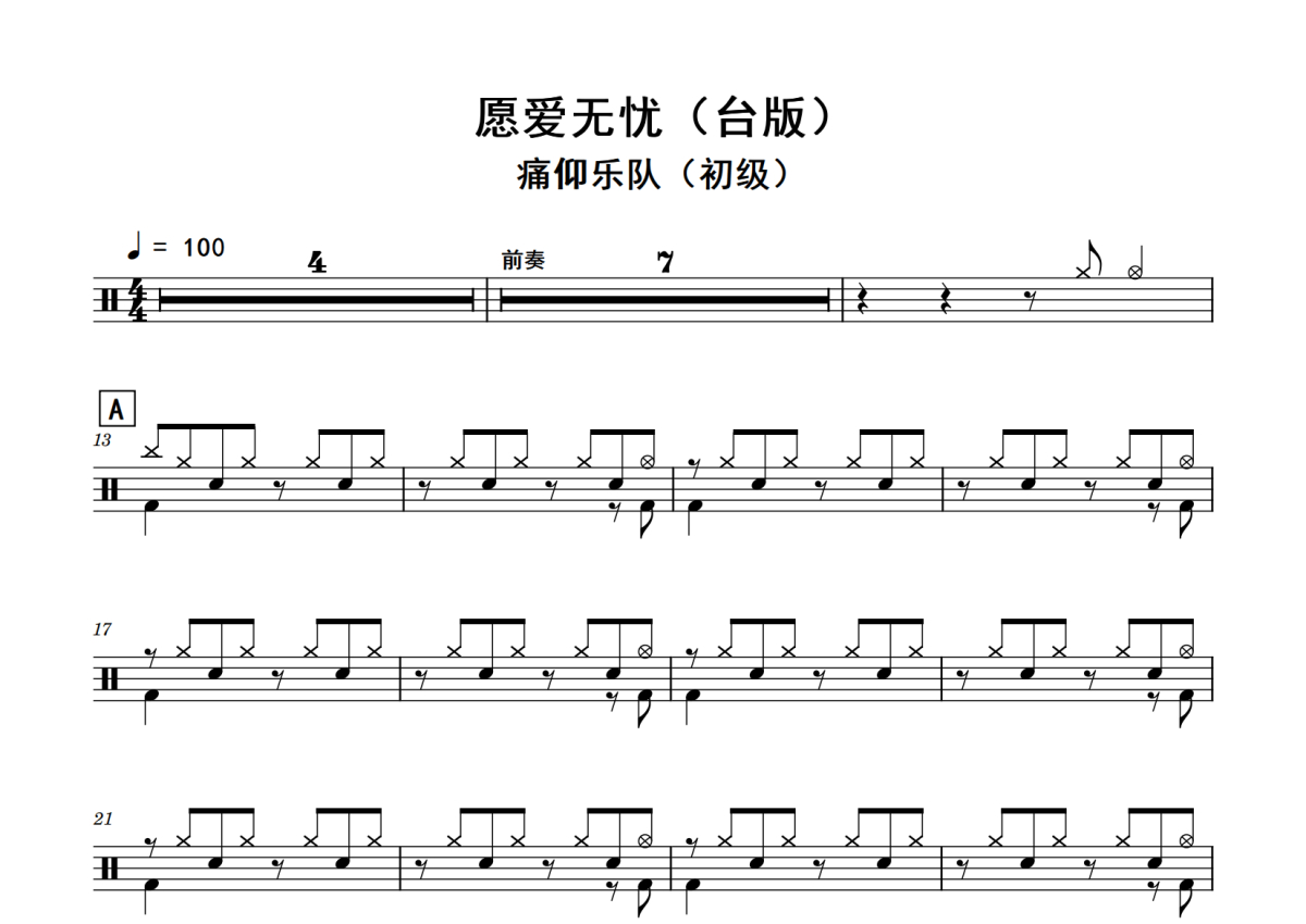 痛仰乐队《愿爱无忧》鼓谱 - 架子鼓谱 - (台版)初级版