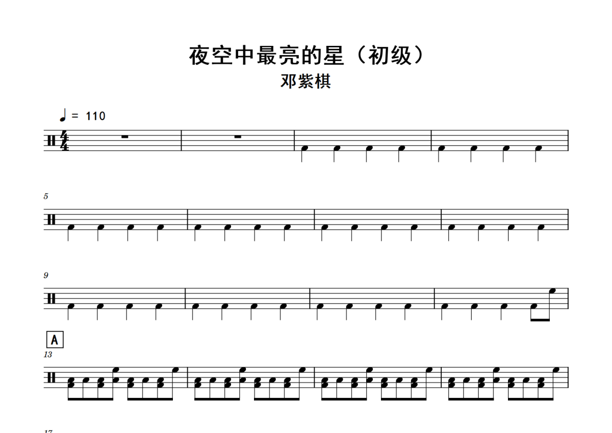 邓紫棋《夜空中最亮的星》鼓谱 - 架子鼓谱 - (初级)