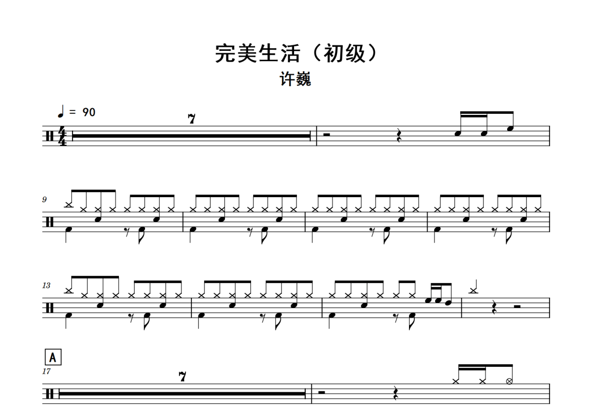 许巍《完美生活》鼓谱 - 架子鼓谱 - (初级)