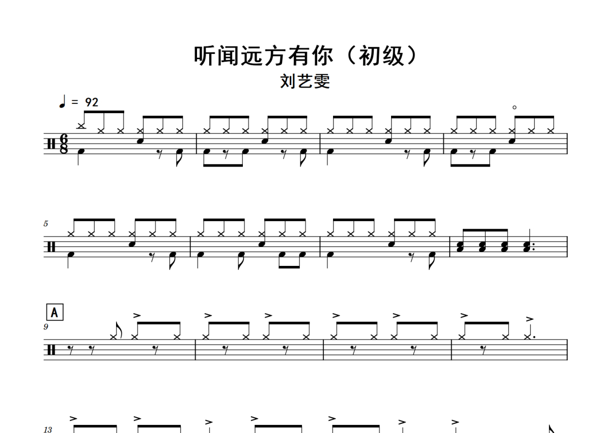 刘艺雯《听闻远方有你》鼓谱 - 架子鼓谱 - (初级)