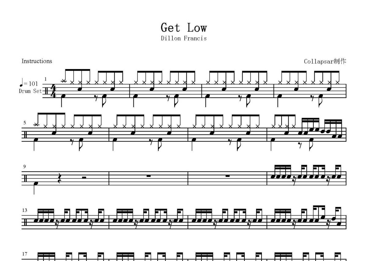 DJ Snake、Dillon Francis《Get Low》鼓谱 - 架子鼓谱
