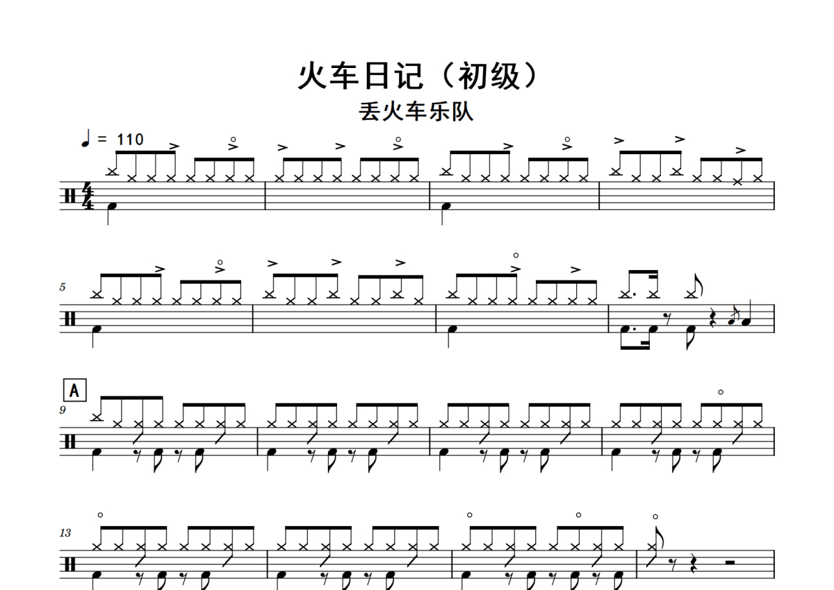 丢火车乐队《火车日记》鼓谱 - 架子鼓谱 - (初级 )