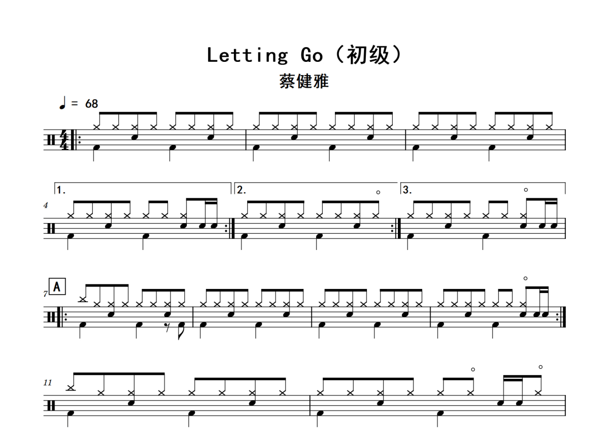 蔡健雅《Letting Go》鼓谱 - 架子鼓谱 - 初级