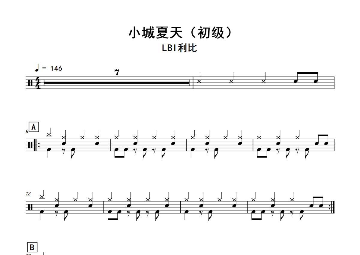 LBI利比《小城夏天》鼓谱 - 架子鼓谱 - 初级