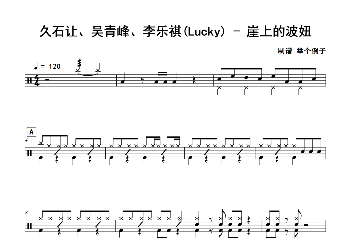 久石让、吴青峰、李乐祺(Lucky)《崖上的波妞》鼓谱 - 架子鼓谱