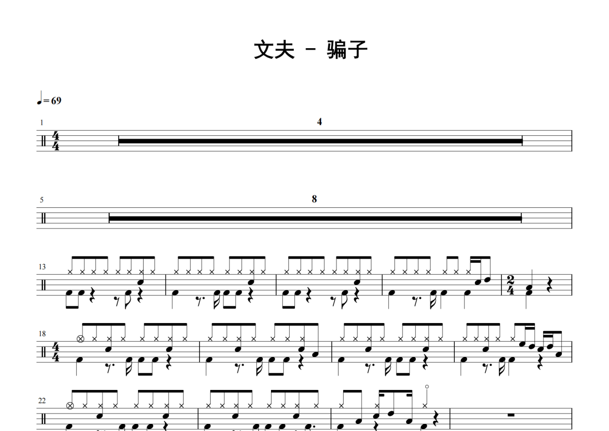 文夫《骗子》鼓谱 - 架子鼓谱