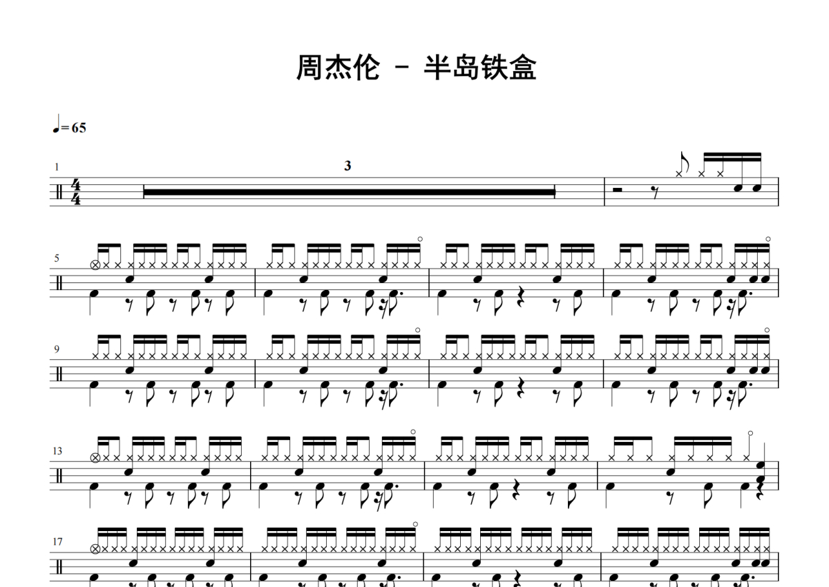 周杰伦《半岛铁盒》鼓谱 - 架子鼓谱