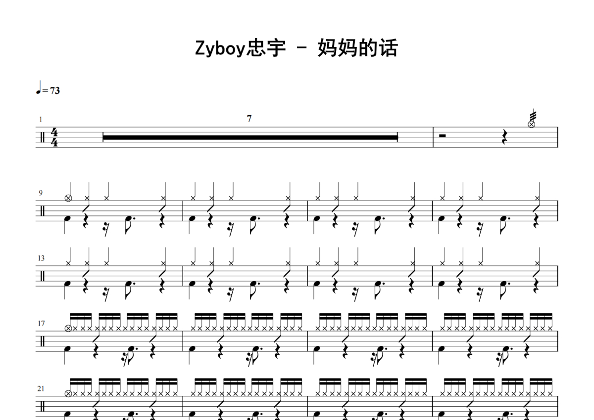 Zyboy忠宇《妈妈的话》鼓谱 - 架子鼓谱
