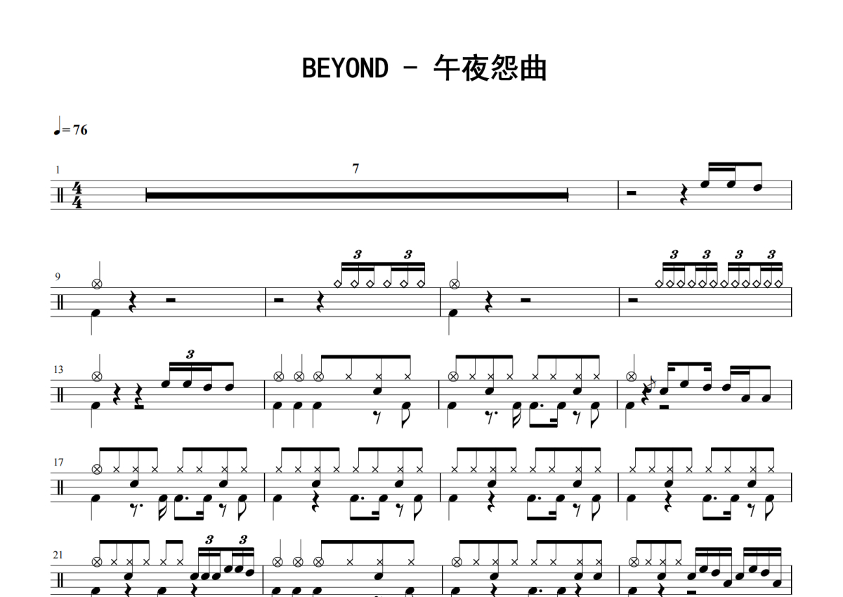 Beyond《午夜怨曲》鼓谱 - 架子鼓谱