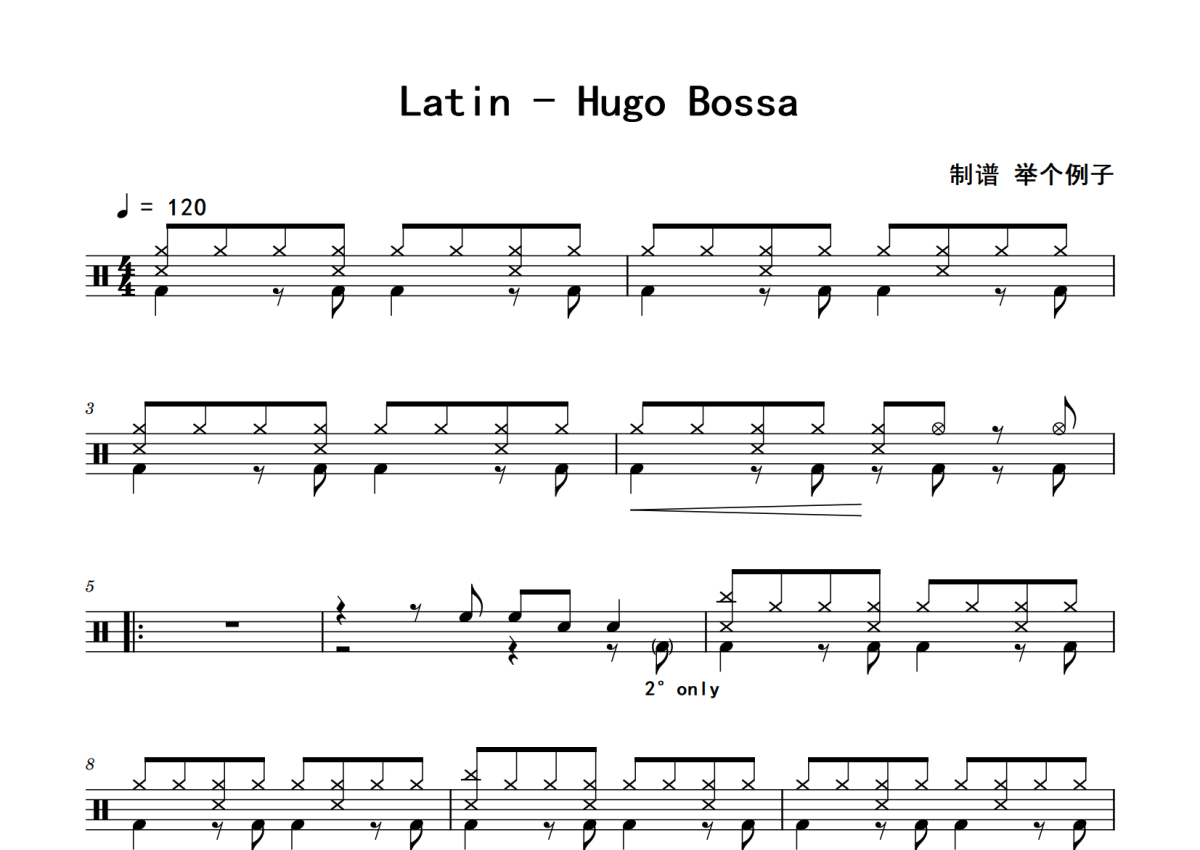 Latin《Hugo Bossa》鼓谱 - 架子鼓谱