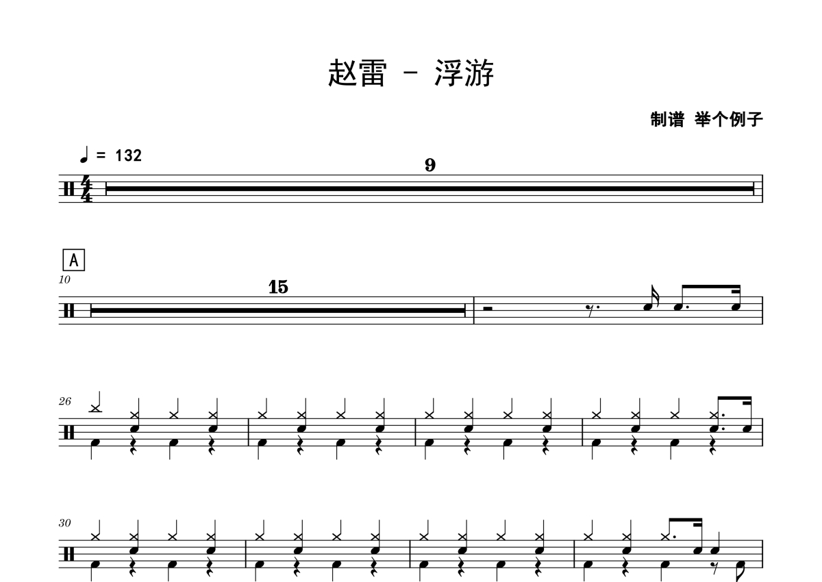 赵雷《浮游》鼓谱 - 架子鼓谱