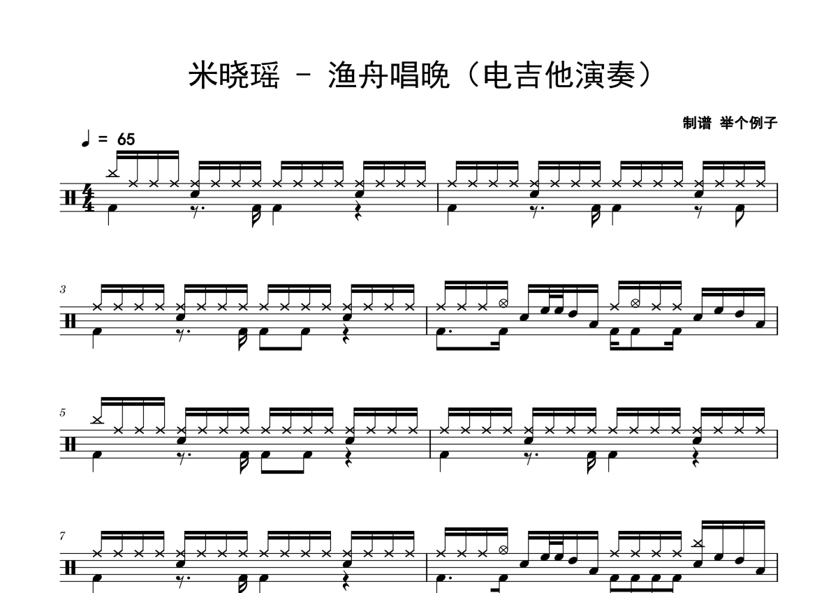 米晓瑶《渔舟唱晚》鼓谱 - 架子鼓谱 - 电吉他演奏