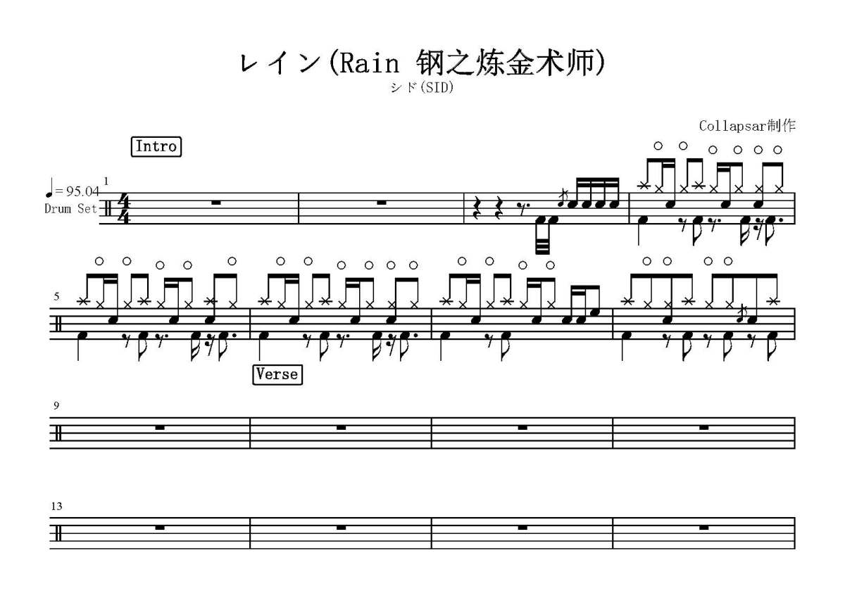 シド(SID)《レイン》鼓谱 - 架子鼓谱