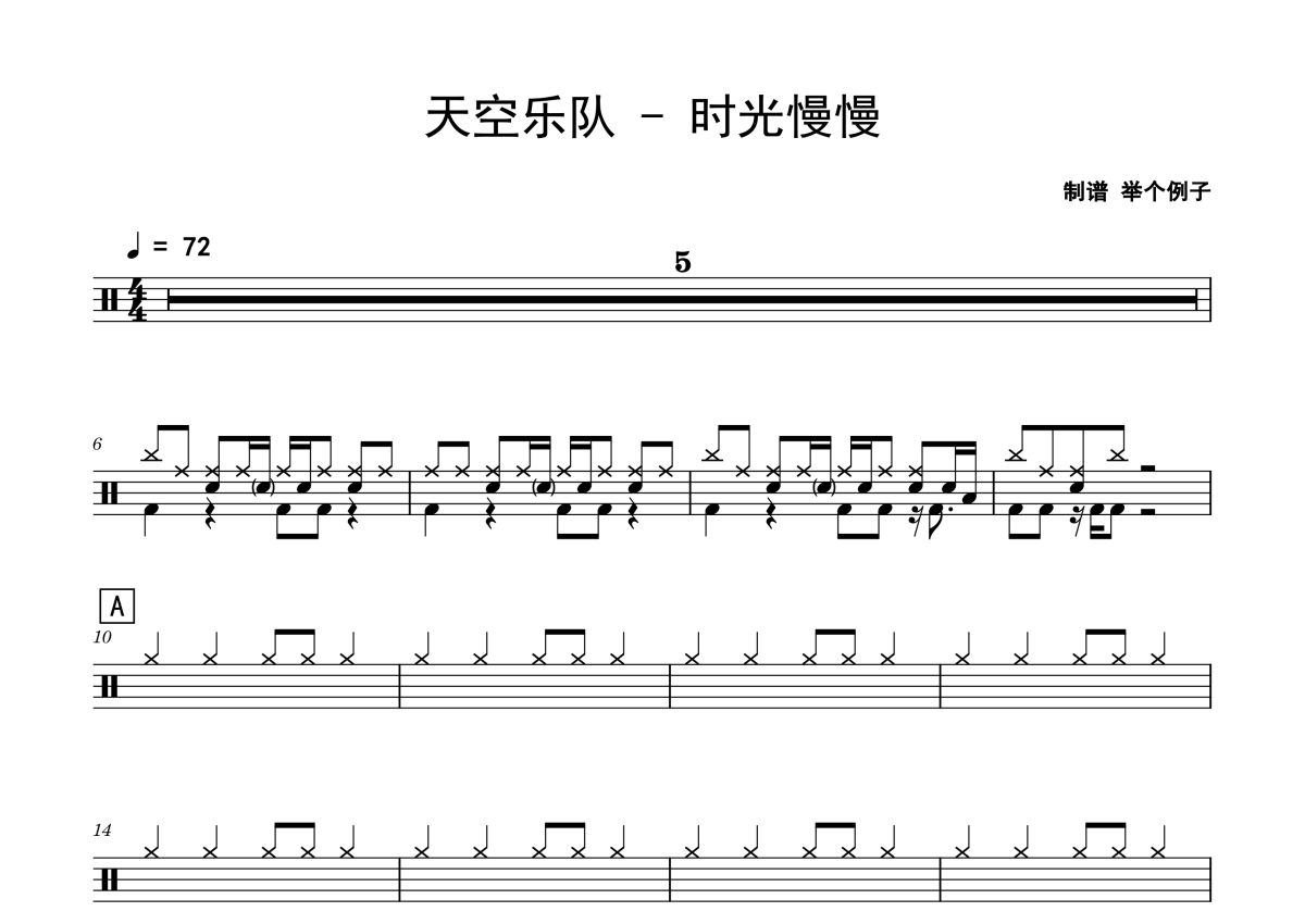 天空乐队《时光慢慢》鼓谱 - 架子鼓谱