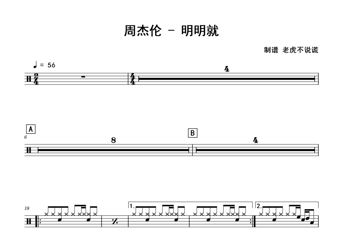 周杰伦《明明就》鼓谱 - 架子鼓谱