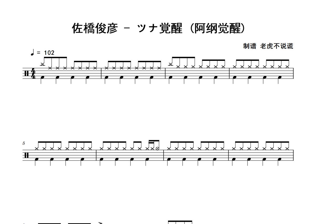 佐橋俊彦《ツナ覚醒 (阿纲觉醒)》鼓谱 - 架子鼓谱