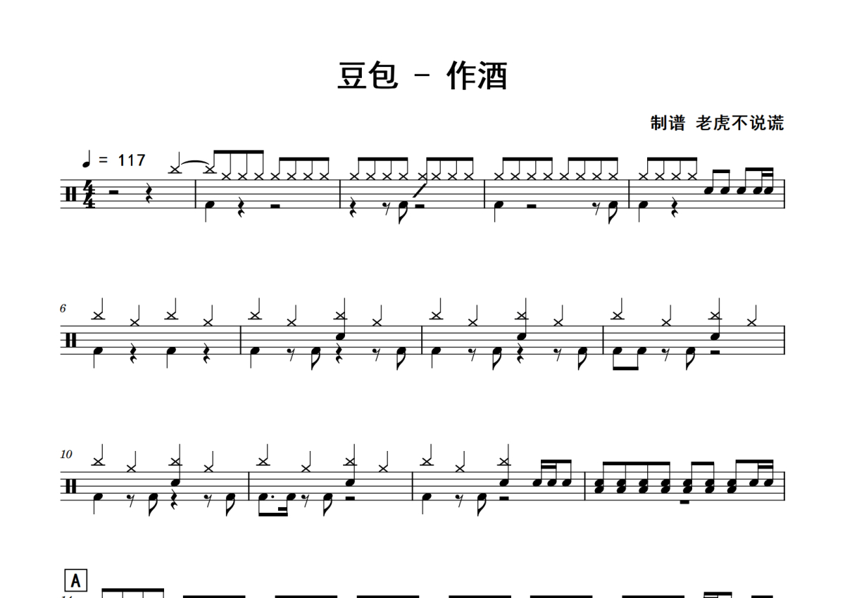 《作酒》是豆包演唱的一首歌曲,拍号为4/4拍,歌曲速度为每分钟117拍,这份鼓谱共有三张高清图谱,图谱由 @老虎不说谎 编配上传,图谱使用五线谱编配,使用这份作酒架子鼓谱,你将能够轻松地敲打出这首豆包的作酒,快来尝试吧。