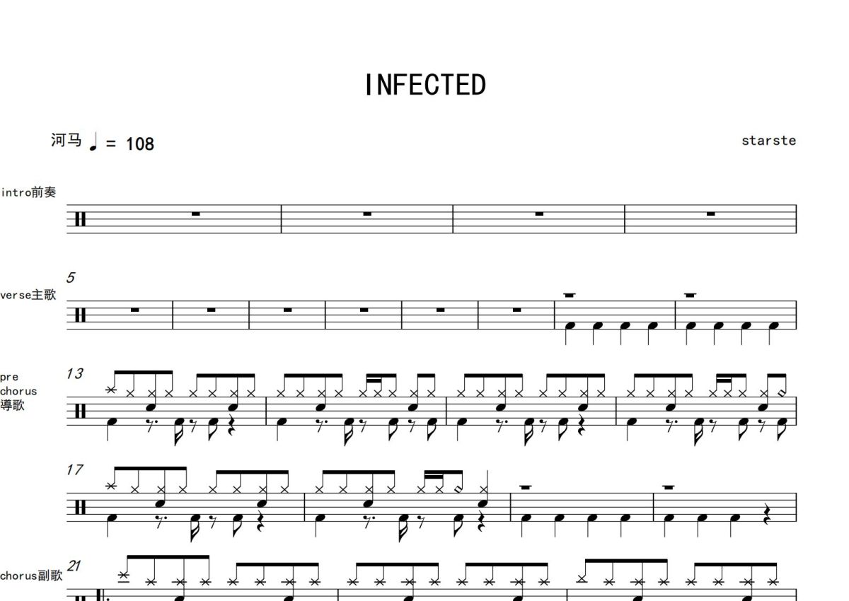 starste《INFECTED》鼓谱 - 架子鼓谱