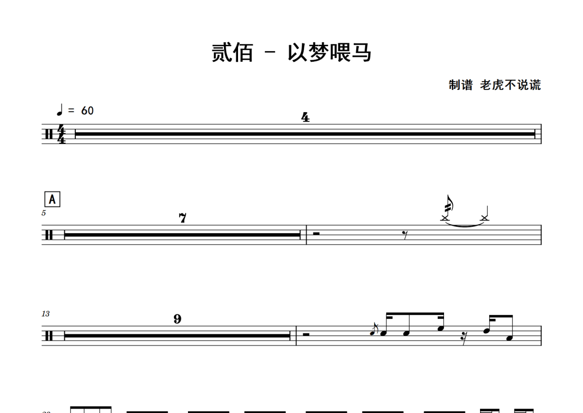 贰佰《以梦喂马》鼓谱 - 架子鼓谱