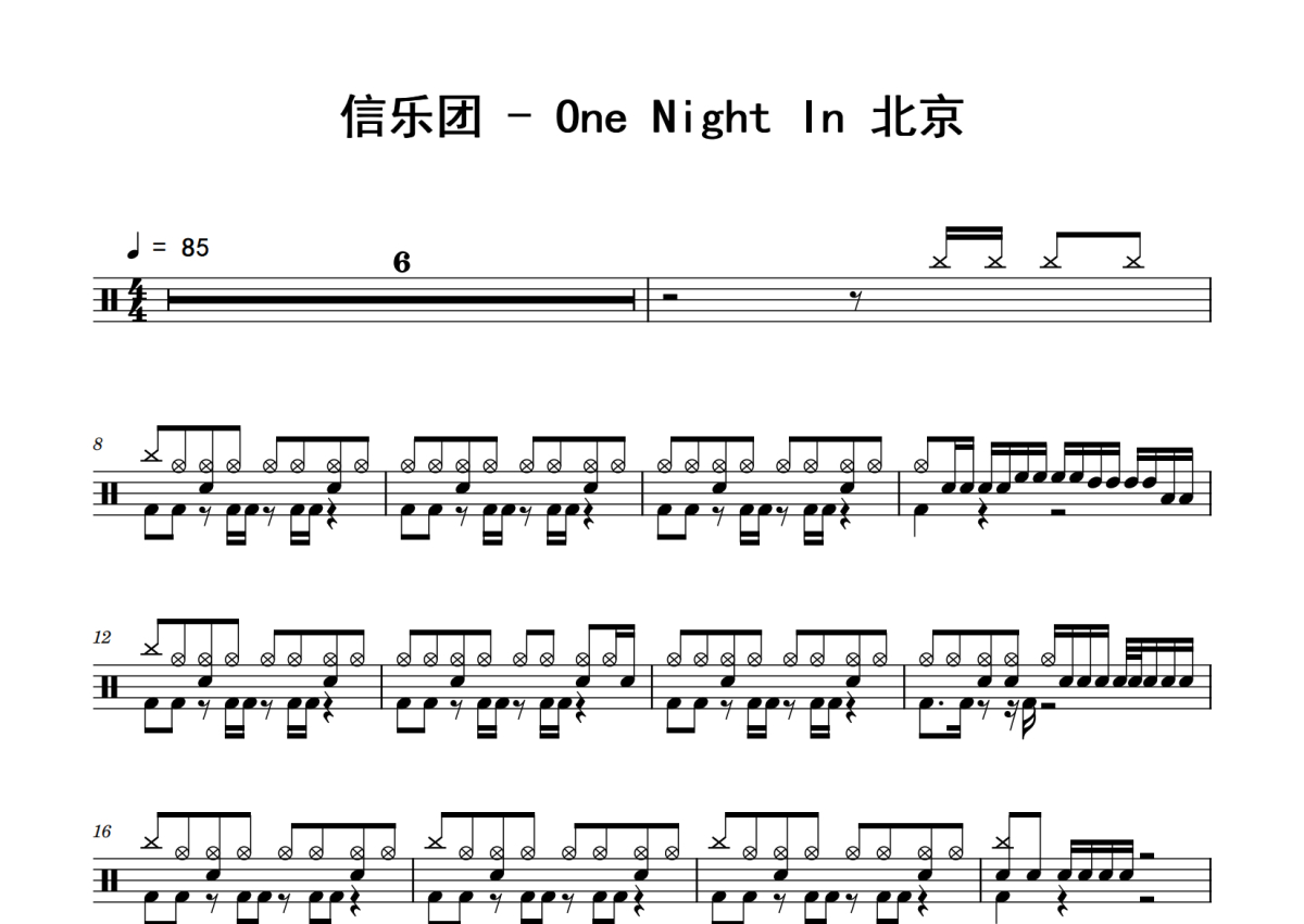 信乐团《One Night In 北京》鼓谱 - 架子鼓谱