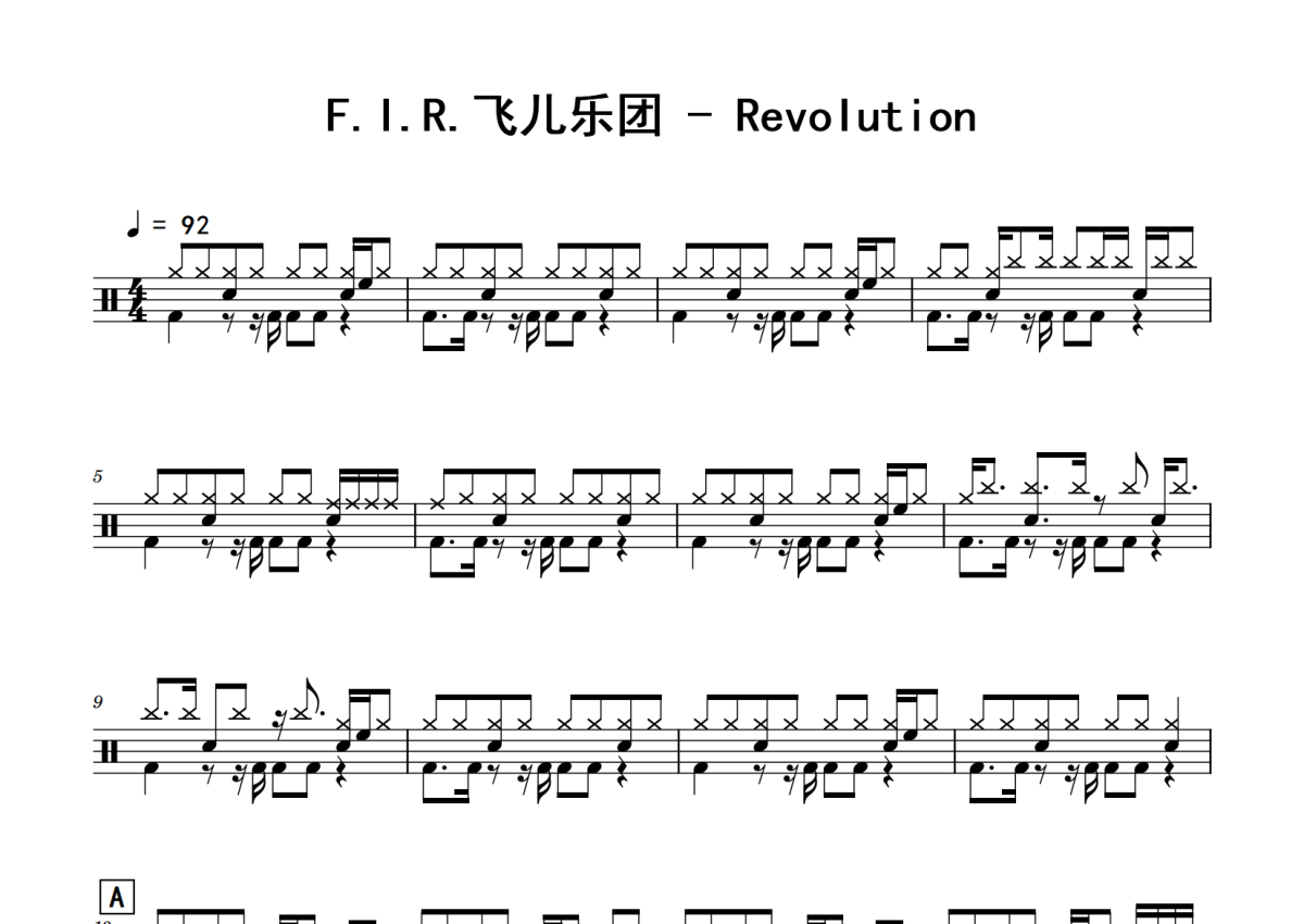 F.I.R.飞儿乐团《Revolution》鼓谱 - 架子鼓谱