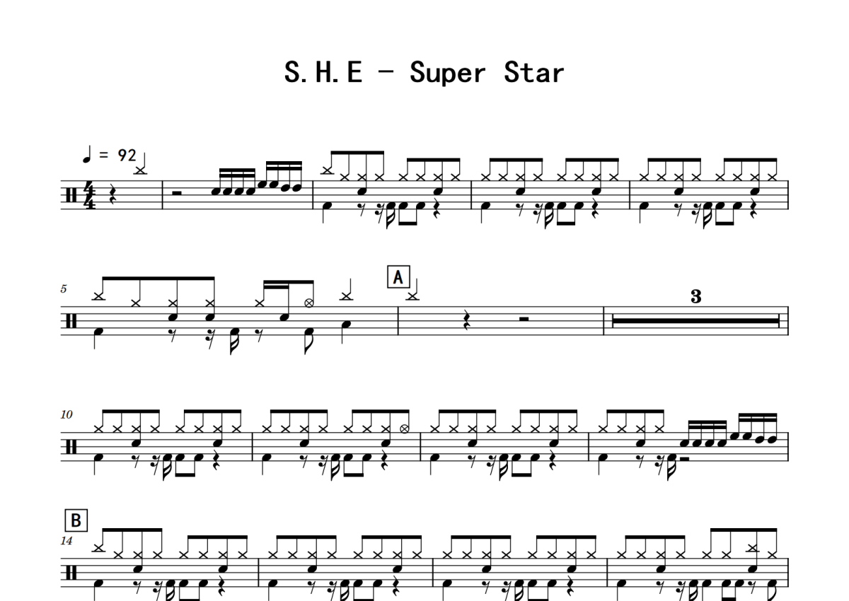 S.H.E《Super Star》鼓谱 - 架子鼓谱