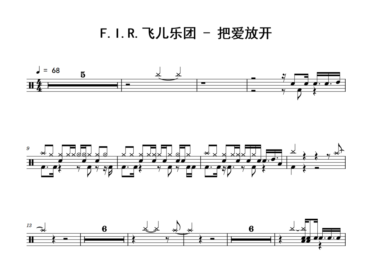 F.I.R.飞儿乐团《把爱放开》鼓谱 - 架子鼓谱