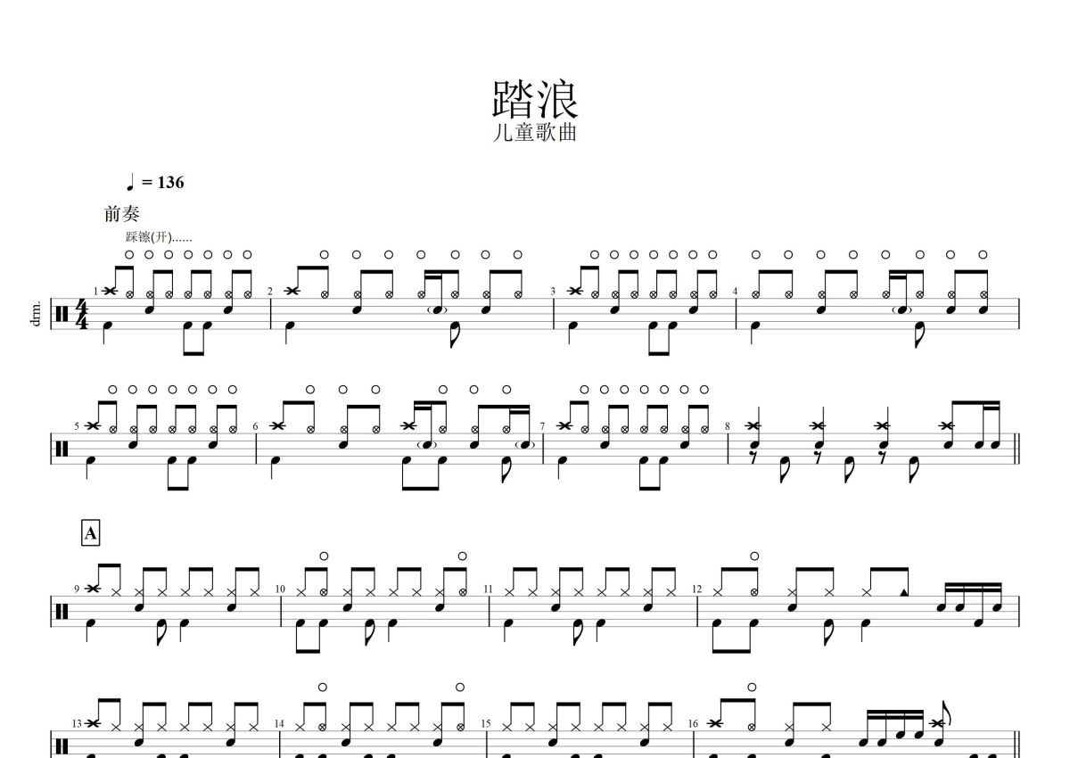 《踏浪》是徐怀钰演唱的一首歌曲,这份鼓谱共有四张高清图谱,图谱由 @打鼓谱 编配上传,图谱使用五线谱编配,使用这份踏浪架子鼓谱,你将能够轻松地敲打出这首徐怀钰的踏浪,快来尝试吧。《踏浪》儿童曲目,徐怀钰演唱。