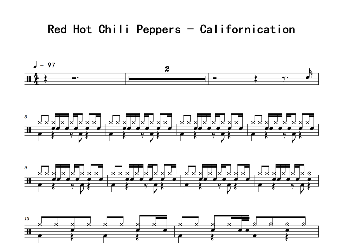 Red Hot Chili Peppers《Californication》鼓谱 - 架子鼓谱