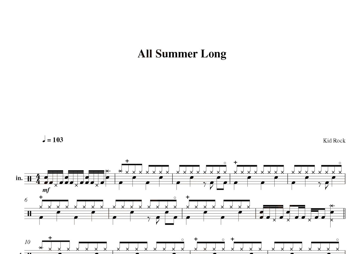 《All summer long》是Kid Rock演唱的一首歌曲,这份鼓谱共有三张高清图谱,图谱由 @打鼓谱 编配上传,图谱使用五线谱编配,使用这份All summer long架子鼓谱,你将能够轻松地敲打出这首Kid Rock的All summer long,快来尝试吧。“整个夏天长”是美国唱片艺术家基德洛克(Kid Rock)的一首歌。它于2008年作为他的第七张录音室专辑《Rock n Roll Jesus》(2007年)中的第三张单曲发行。它的灵感来自鲍勃·塞格(Bob Seger)的歌曲“ Night Moves ”以及Lynyrd Skynyrd的“ Sweet Home Alabama ”和Warren Zevon的“ London Werewolves of London ” ,[1]均为“ All Summer Long”样本。混搭的想法是由Mike E.。