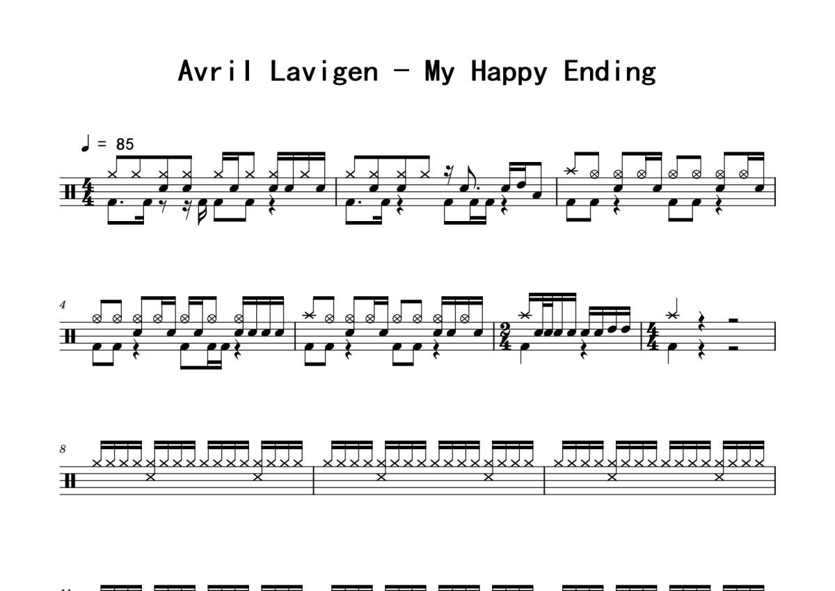 Avril Lavigen《My Happy Ending》鼓谱 - 架子鼓谱
