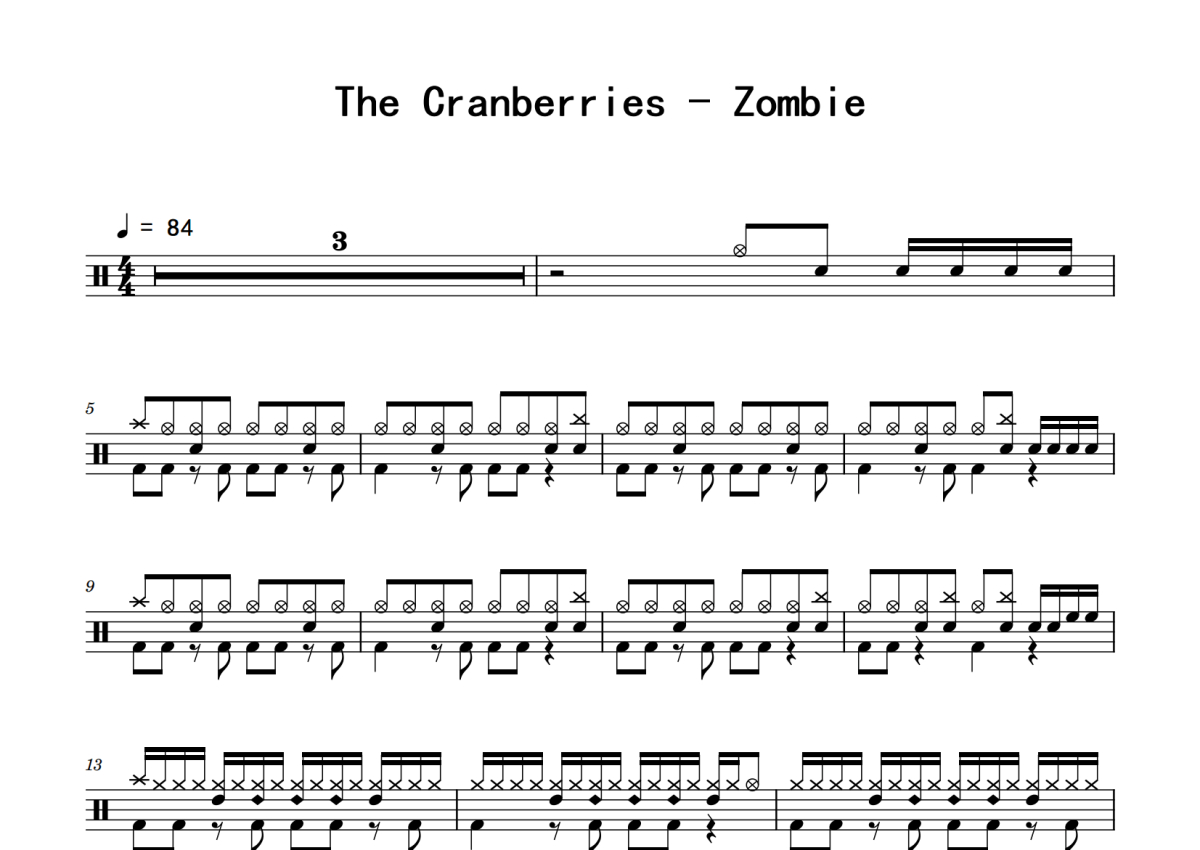 The Cranberries《Zombie》鼓谱 - 架子鼓谱