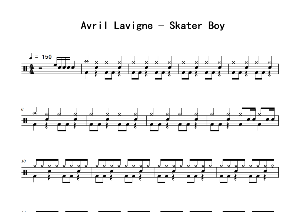 Avril Lavigne《Skater Boy》鼓谱 - 架子鼓谱
