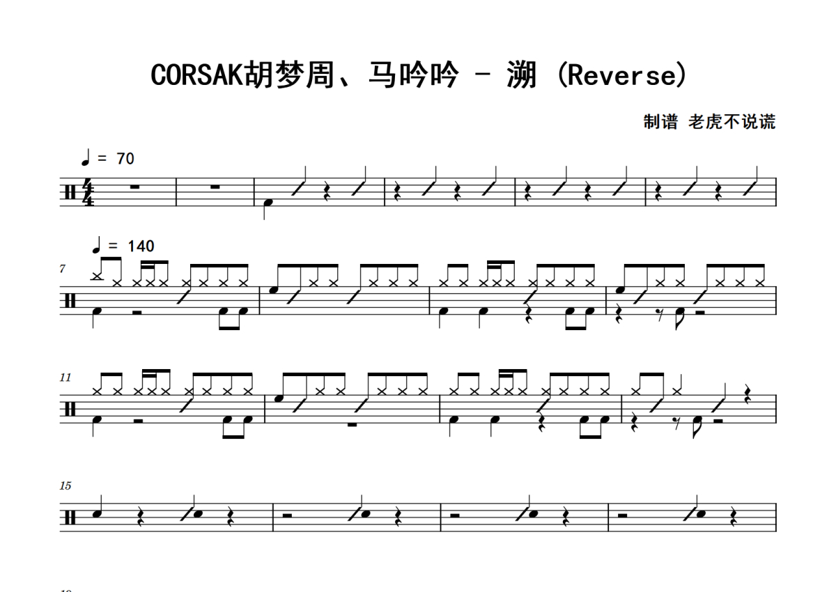 CORSAK胡梦周、马吟吟《溯 (Reverse)》鼓谱 - 架子鼓谱