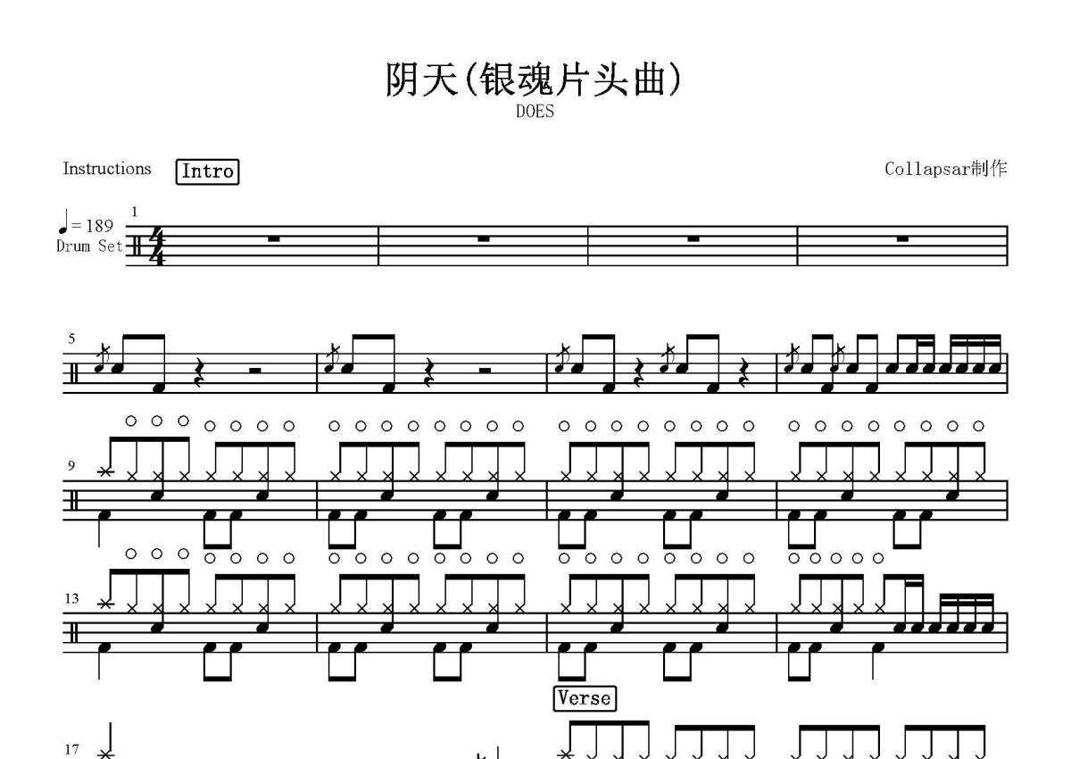 《阴天》是DOES演唱的一首歌曲,这份鼓谱共有四张高清图谱,图谱由 @打鼓谱 编配上传,图谱使用五线谱编配,使用这份阴天架子鼓谱,你将能够轻松地敲打出这首DOES的阴天,快来尝试吧。1。