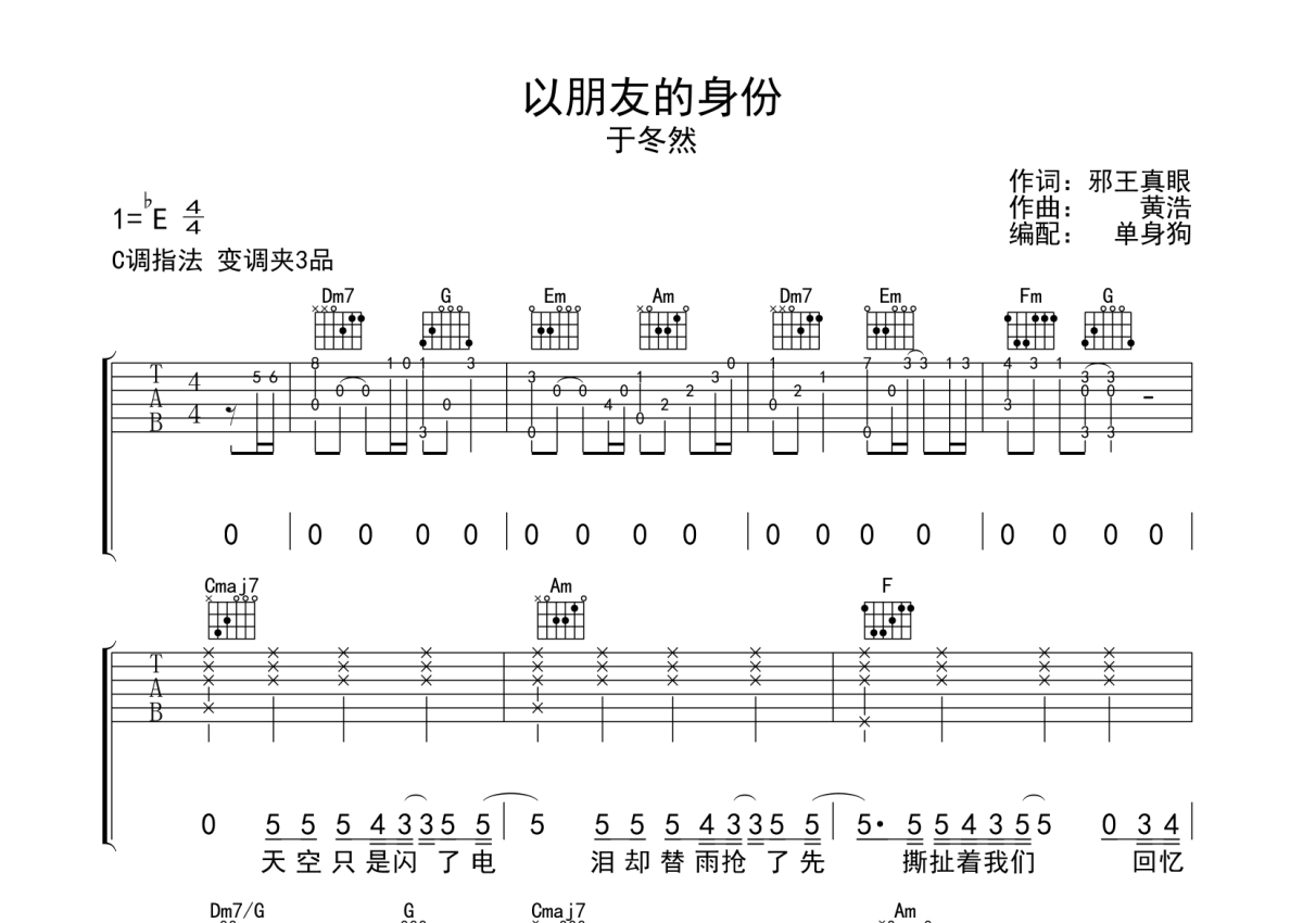 于冬然《以朋友的身份》吉他谱 - C调弹唱六线谱