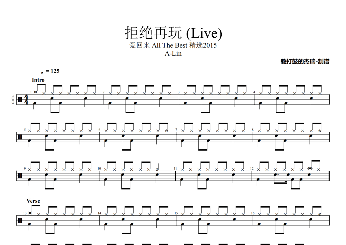 A-Lin《拒绝再玩》鼓谱 - 架子鼓谱 - 爱回来 All The Best 精选2015 (Live)