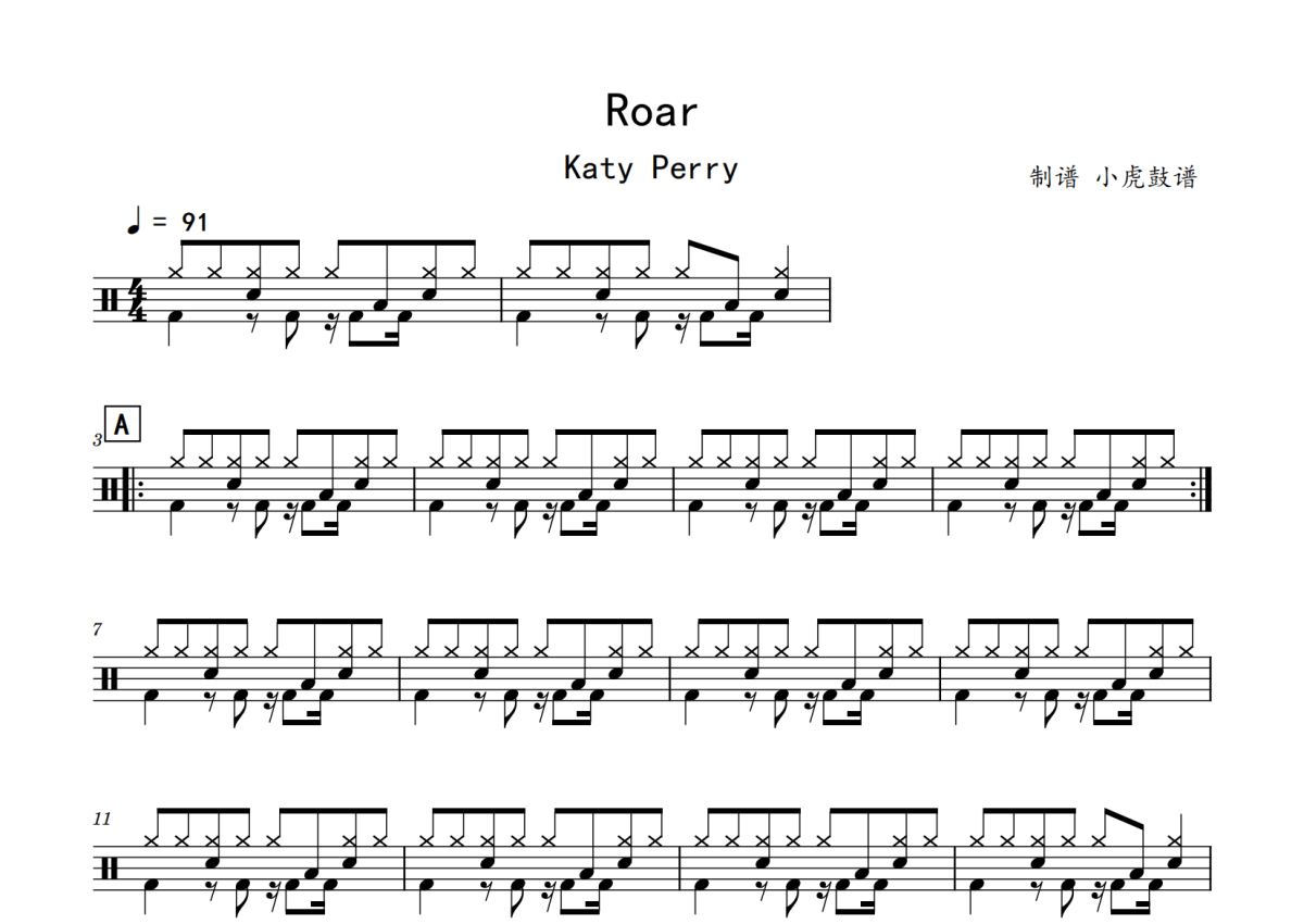 KATY PERRY《Roar》鼓谱 - 架子鼓谱